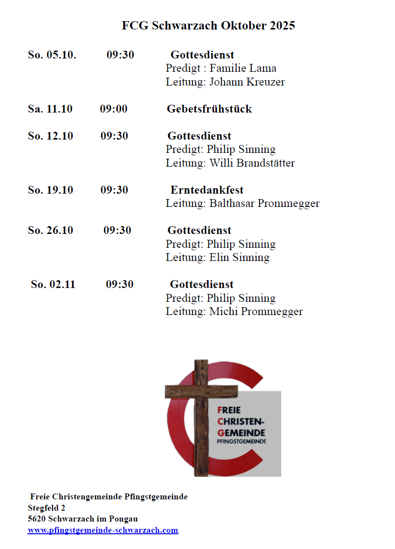 Unsere Gottesdienste finden an Sonntagen um 09:30 Uhr statt. Hier findest du unser Monatsblatt mit allen Aktivitäten, sowie weitere Veranstaltungen